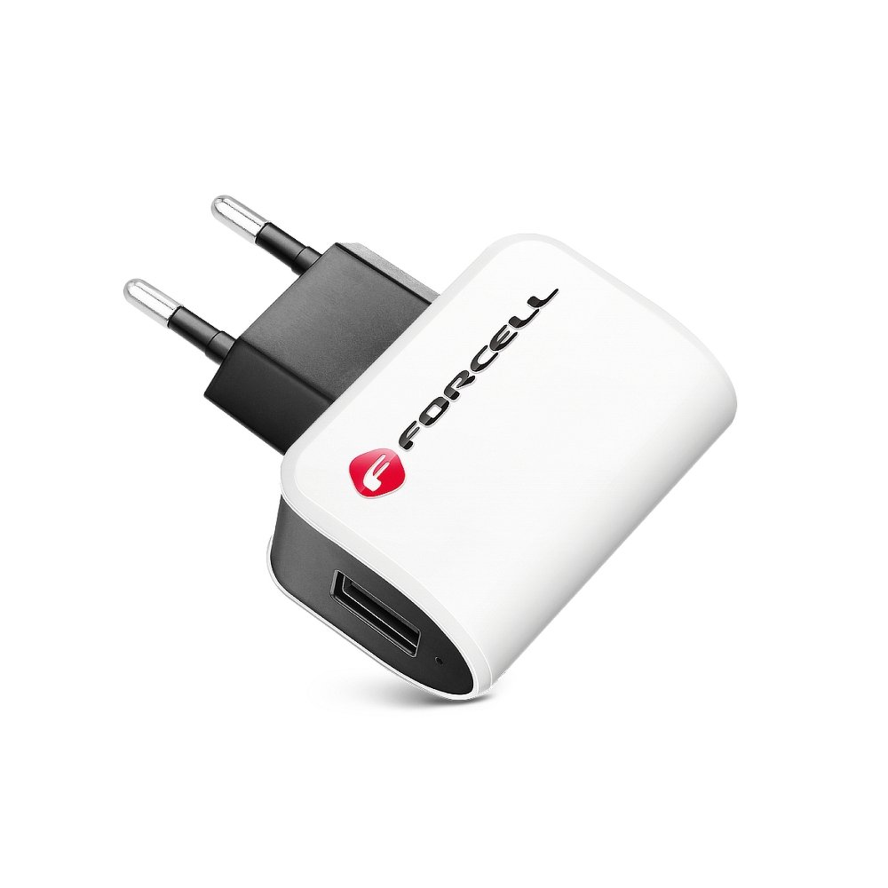 Univerzalni polnilec Forcell 1A brez kabla. Združljiv z večino mobilnih telefonov, varen z zaščito pred pregrevanjem in prenapetostjo. Kompakten in zanesljiv adapter.