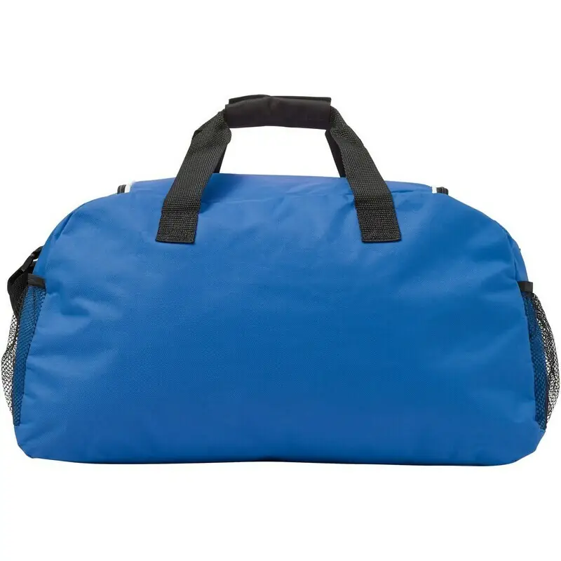 Športna, potovalna torba s sprednjim žepom na zadrgo, nastavljivim naramnim pasom in mrežastim žepom na obeh straneh Material: poliester (600D). Dimenzije: 55 x 20 x 21 cm.