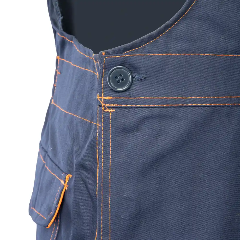 Naramnice: dolge, široke, nastavljive naramnice. Konstrukcija/šivanje: hlače imajo v mednožju vstavek za večjo svobodo gibanja in udobje uporabnika, veliko število zaklepnih šivov na mestih, ki so še posebej izpostavljeni raztrganju.