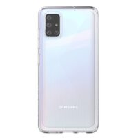 Prozoren ovitek za Samsung Galaxy A51. Tanek, lahek in odporen na udarce. Certificiran »Oblikovano za Samsung«, združljiv z brezžičnim polnjenjem.