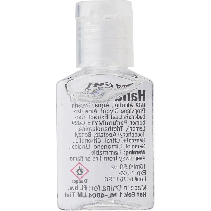 Razkužilo za roke z vlažilnimi sredstvi z 62 % alkohola, 15 ml Material: PET. Mere: 3 x 1,8 x 6,3 cm.