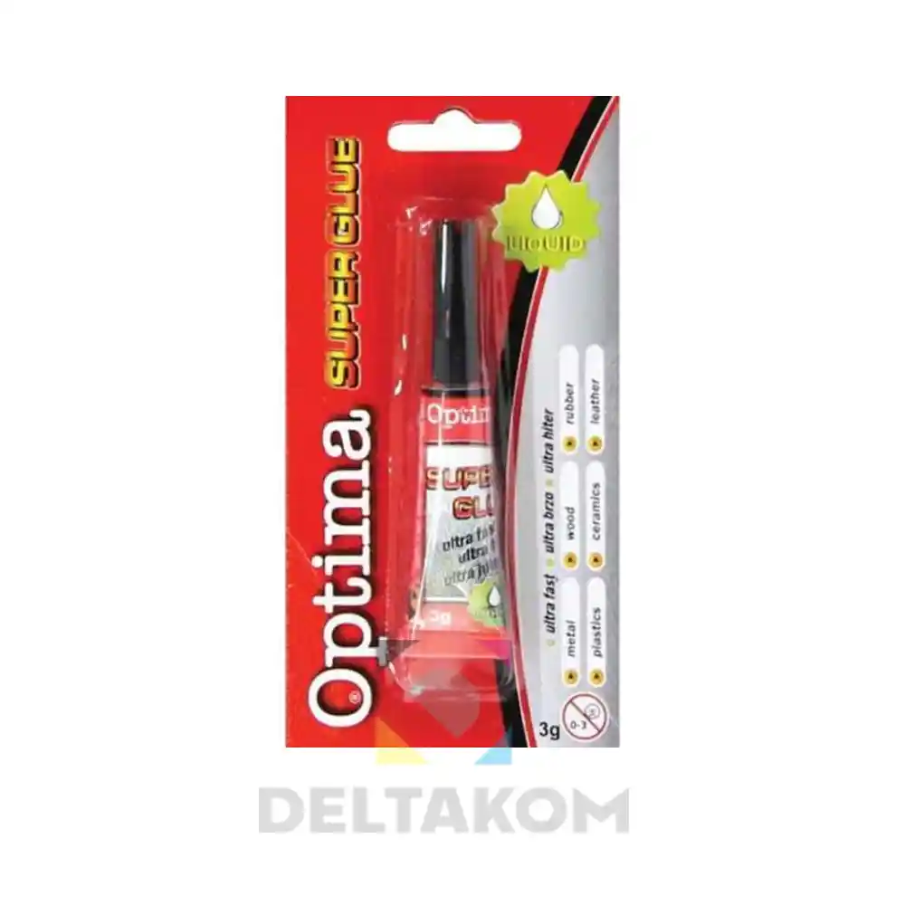 Sekundno lepilo Optima 3 g z izjemno močnim oprijemom za hitro in trajno lepljenje različnih materialov.