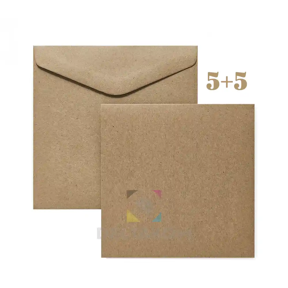 - Paket vsebuje: 5 prepognjenih voščilnic iz KRAFT kartona 230 g/m2 velikosti 135 × 135 mm + 5 kos kuvert 120 g/m2 velikosti 145 x 145 mm.