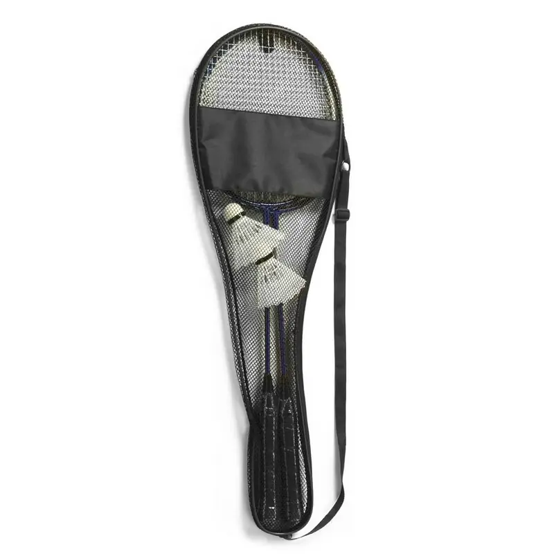 Set za badminton, 2 loparja z jeklenim okvirjem in plastičnimi ročaji, 2 loparja, črna mrežasta torbica z naramnico Material: kovina, RPET, najlon, plastika.