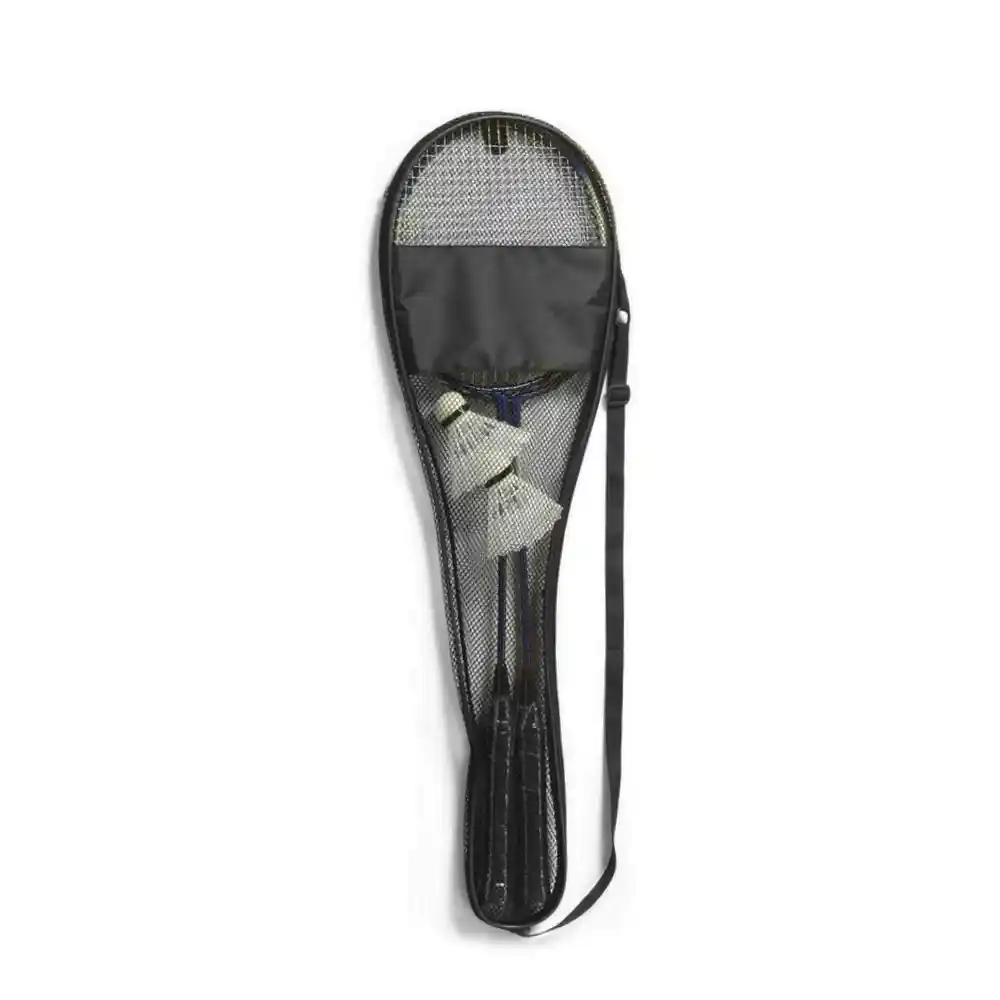 Set za badminton vključuje 2 loparja, 2 žogici in torbico. Popoln za igro doma, v parku ali na počitnicah. Lahek, prenosljiv in primeren za vse starosti.