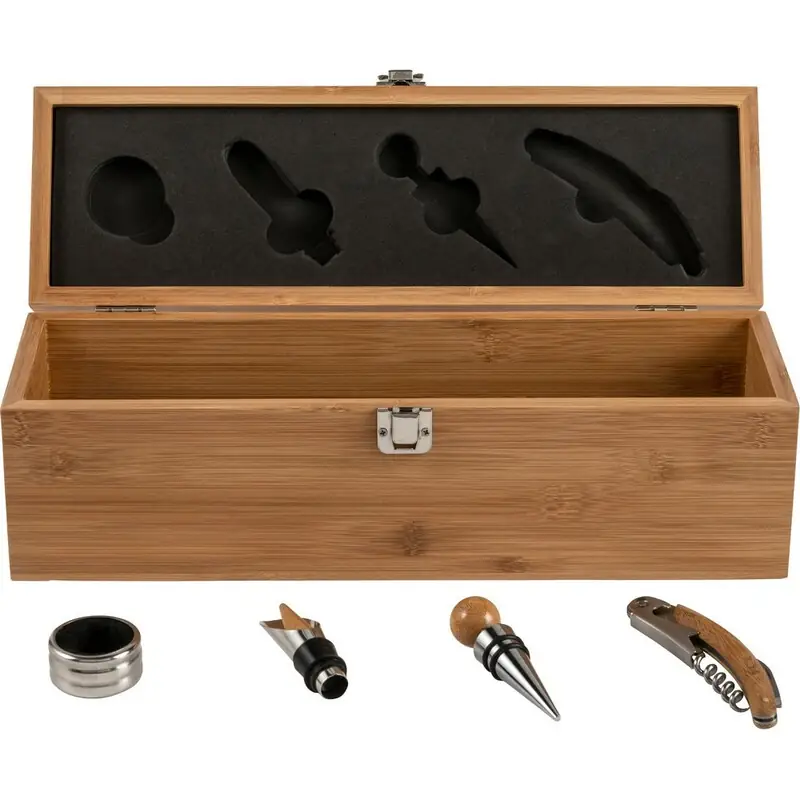 Set za vino iz bambusa 4 kosi škatla za vino – Elegantno in zanimivo promocijsko darilo.