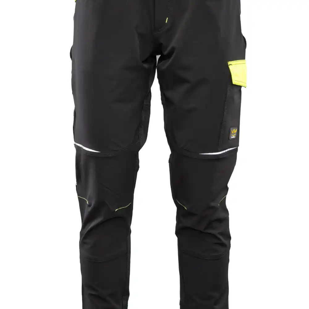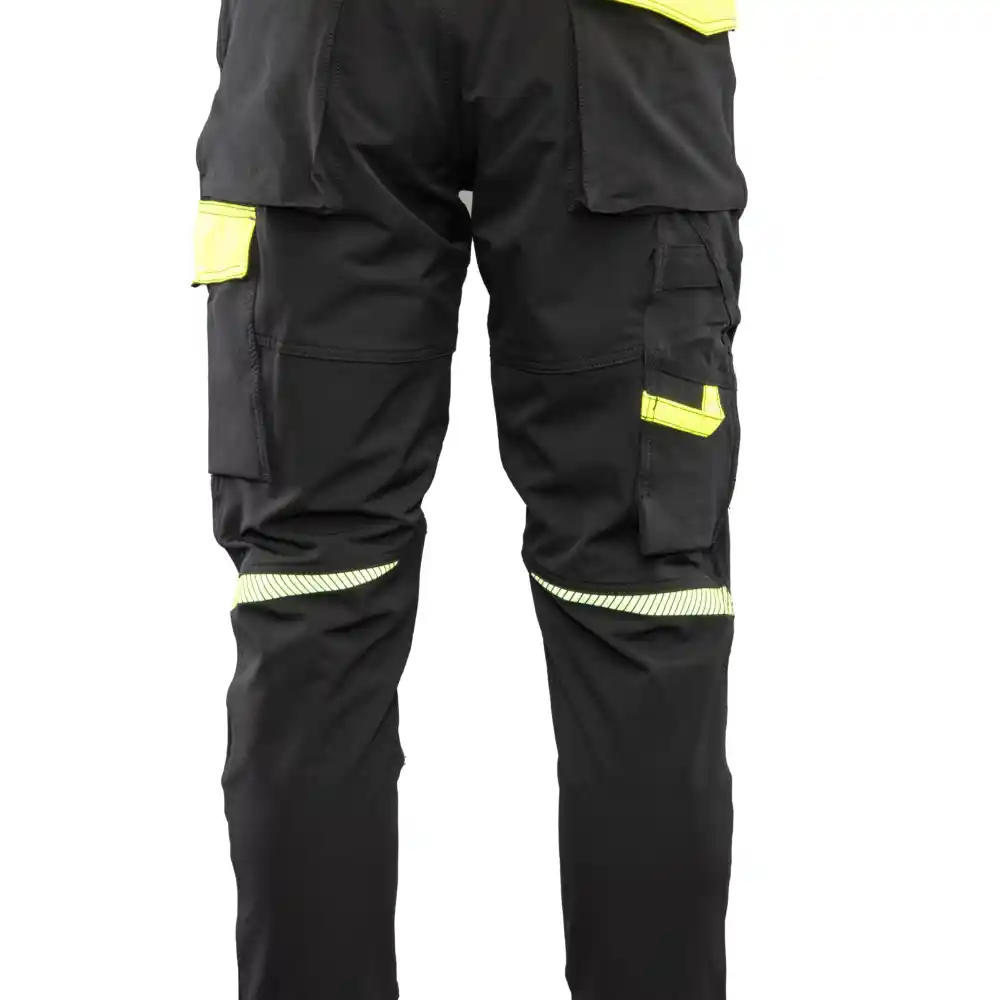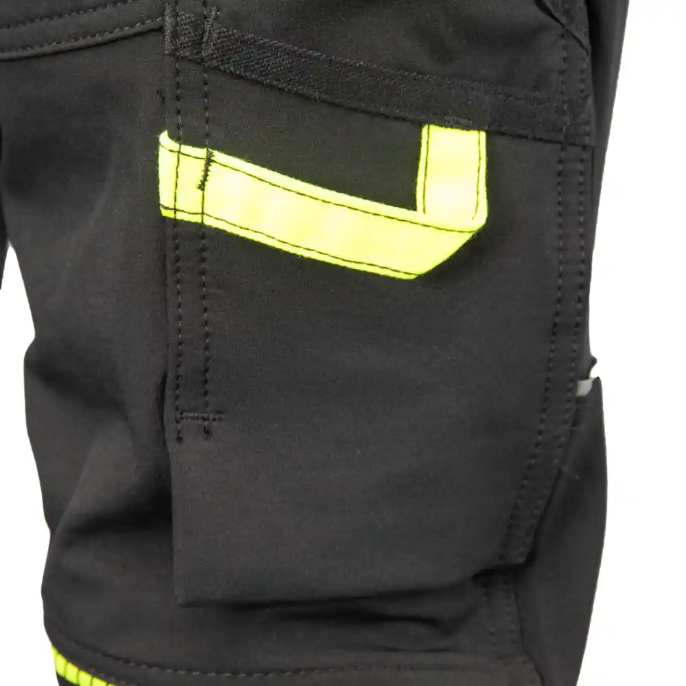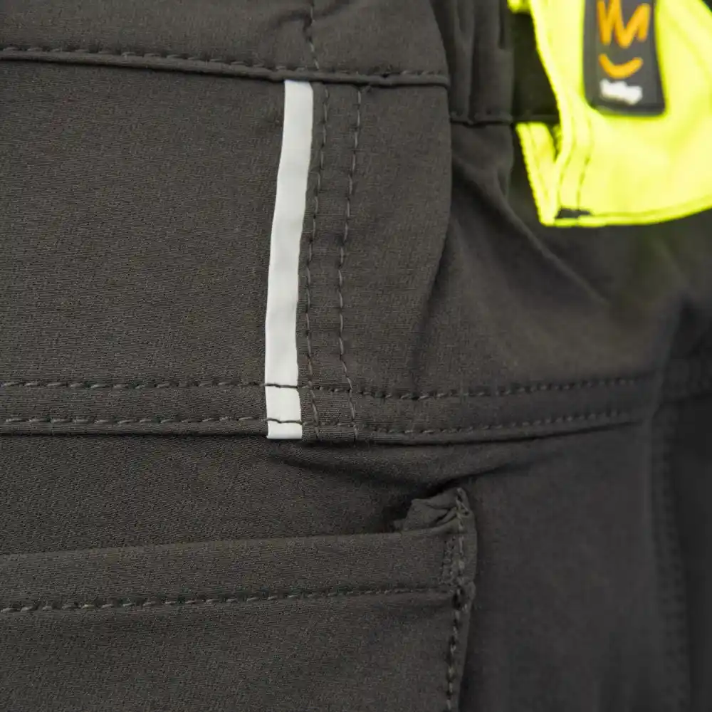 Žepi: žep za merilni trak, dva stranska žepa, dva žepa na zadnjem delu hlač, žep z zadrgo, žep za mobilni telefon. Odsevni elementi: odsevni vložki, odsevni elementi.