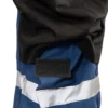 Žepi: žep za merilni trak, ojačeni žepi z velcro zapenjanjem, žep za mobilni telefon, dva stranska žepa, žep za dokumente, dva žepa za pisala, ergonomski žep za kolenske blazinice iz CORDURA, dva žepa na zadnjem delu hlač, dva snemljiva žepa za monterja. Nastavitev pasu: nastavljiv pas z elastičnim trakom. Odsevni elementi: odsevni robovi, odsevne črte na spodnjem delu hlačnic.