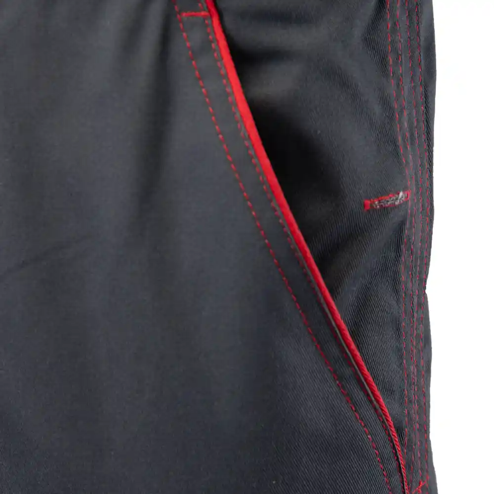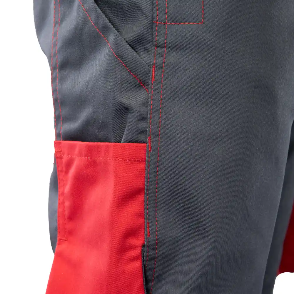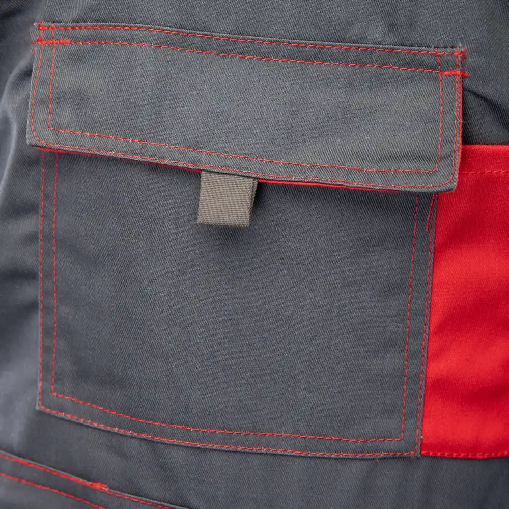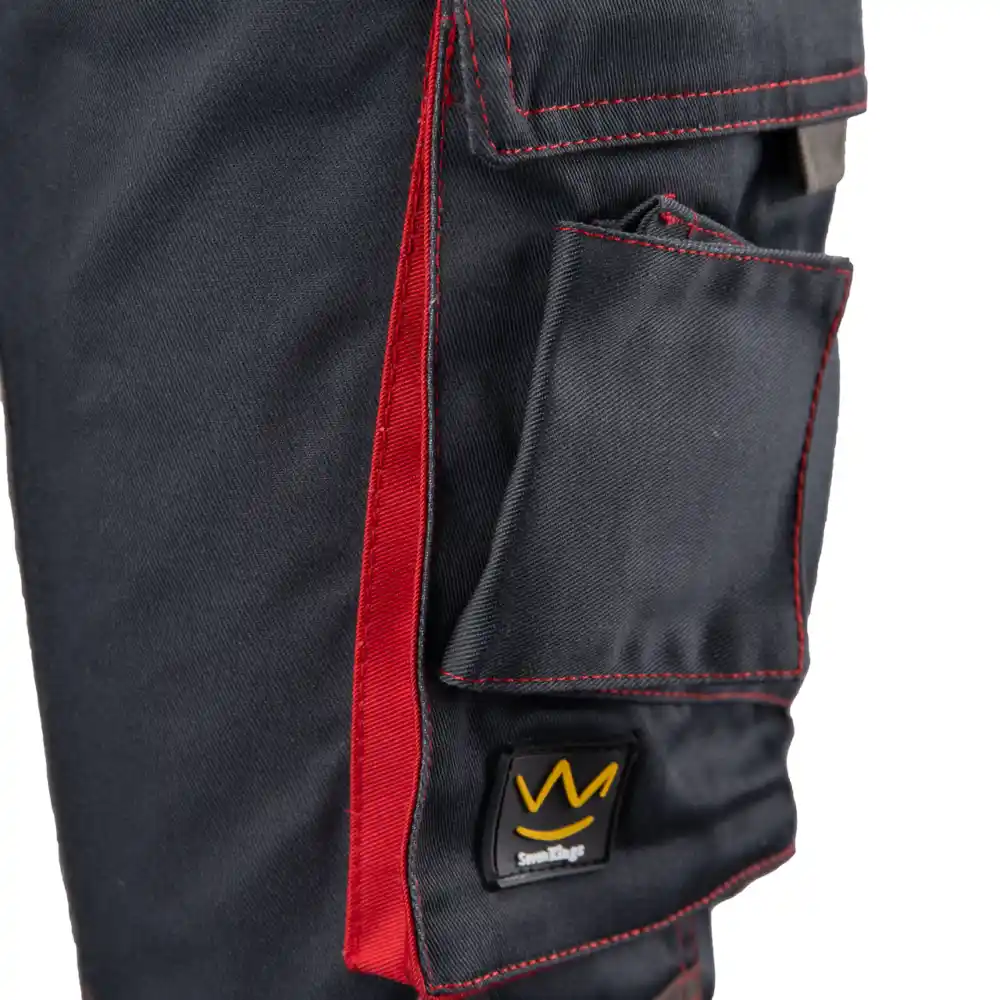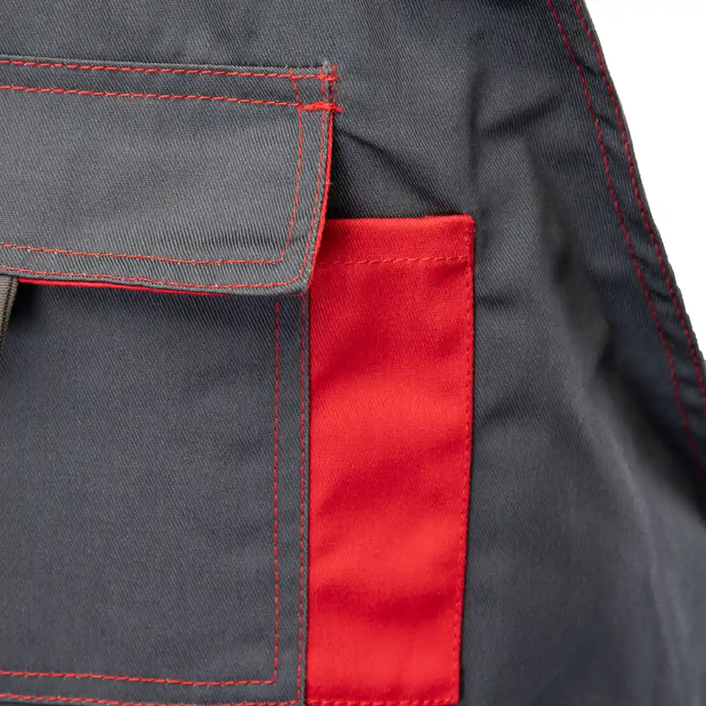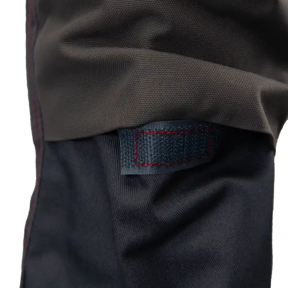 Žepi: dva žepa na zadnjem delu hlač, ojačeni žepi z velcro zapenjanjem, žep za mobilni telefon, dva žepa za pisala, žep za dokumente, žep za merilni trak, ergonomski žep za kolenske blazinice iz CORDURA. Nastavitev pasu: nastavljiv pas z gumbi.