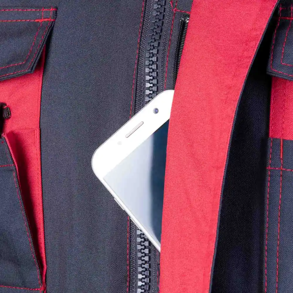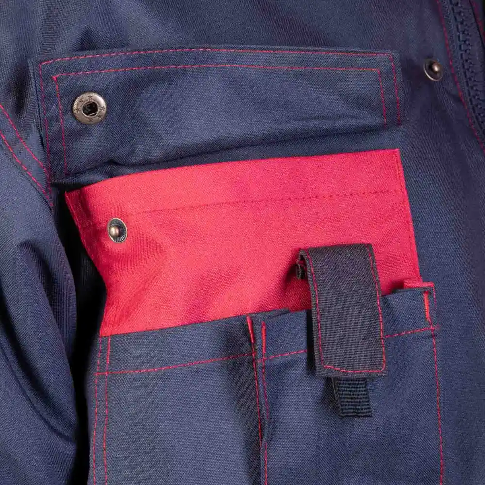 Konstrukcija/šivanje: veliko število zaklepnih šivov na mestih, ki so še posebej izpostavljeni raztrganju, zračniki, na hrbtu ima zavoje za večjo svobodo gibanja, barvni vložki, barvni okraski, kratka jakna, dvojni šivi, šivana z močno nitjo. Žepi: žep za mobilni telefon, dva stranska žepa, dva prsna žepa, prekrita s ploščico, z gumbi, Napoleonov žep z zadrgo, dodatni žep na rokavu.