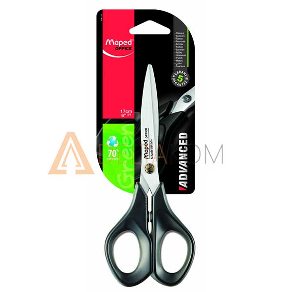 Škarje Maped Advanced 17 cm so izdelane iz kakovostnih materialov, kar vam bo omogočalo udobno in preprosto uporabo. Rezilo škarij je izdelano iz jekla. Rezila vam nudijo odlično ostrino in bo tako delo preprosto in hitro, brez uničenih robov pri rezanju. Škarje se lahko pohvalijo z izredno trdoto rezila. Plastični ročaji zagotavljajo udoben oprijem. Namenjene so za uporabo doma in v pisarni.