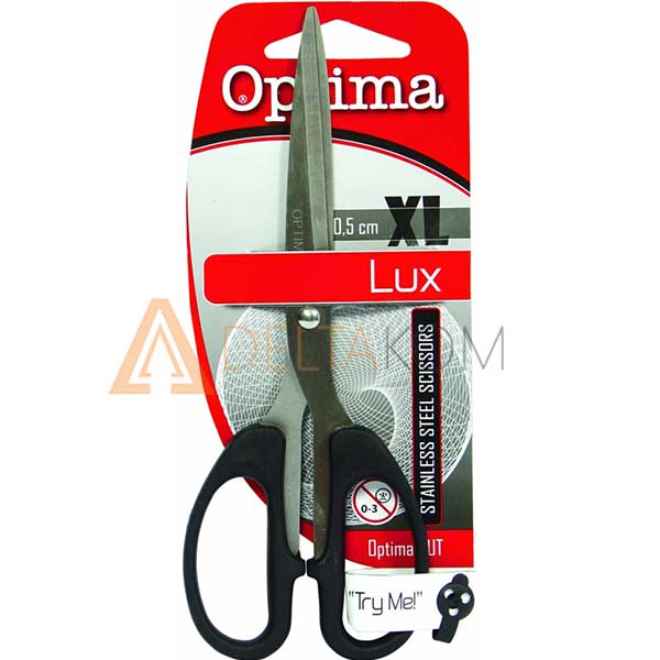 Škarje Optima LUX so izdelane iz kakovostnih materialov, kar vam bo omogočalo udobno in preprosto uporabo. Rezilo škarij je izdelano iz jekla. Rezila vam nudijo odlično ostrino in bo tako delo preprosto in hitro, brez uničenih robov pri rezanju. Škarje se lahko pohvalijo z izredno trdoto rezila. Plastični ročaji zagotavljajo udoben oprijem. Namenjene so za uporabo doma in v pisarni.