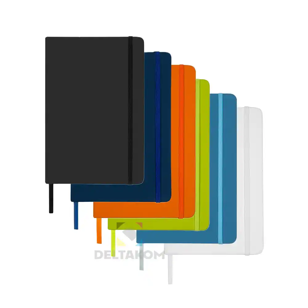 Soft feel A6 rokovnik z mehko platnico, 90 črtnih strani, elastičnim trakom in označevalcem strani. Na voljo v različnih barvah z možnostjo dotiska ali gravure.