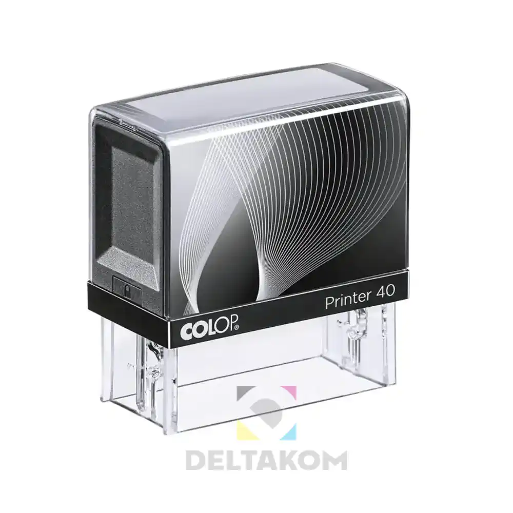 Štampiljka Colop Printer 40 črno ohišje z odtisom 23 × 59 mm in do 6 vrstic besedila. Samobarvna štampiljka z vgrajeno blazinico za profesionalno uporabo.