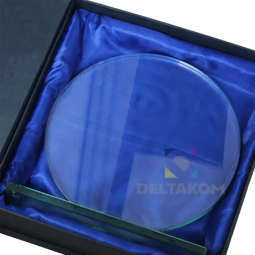 Steklena plaketa okrogla MARINA, primerna za graviranje.