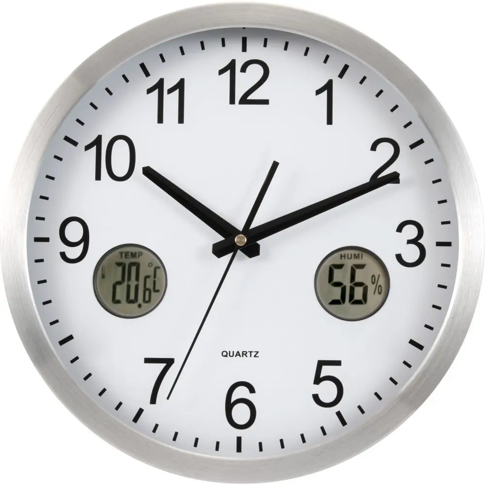 Stenska ura, vremenska postaja s termometrom in higrometrom. Material: plastika, aluminij. Dimenzije: Ø30,2 x 4 cm.