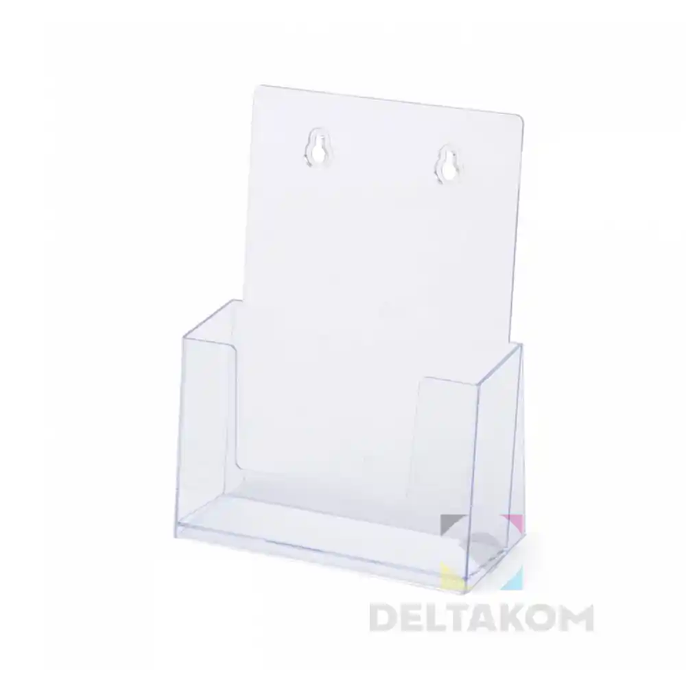 Stensko stojalo za brošure formata 1x A4. Prozorna plastika. Pokončna postavitev. Idealno za letake in zloženke.
