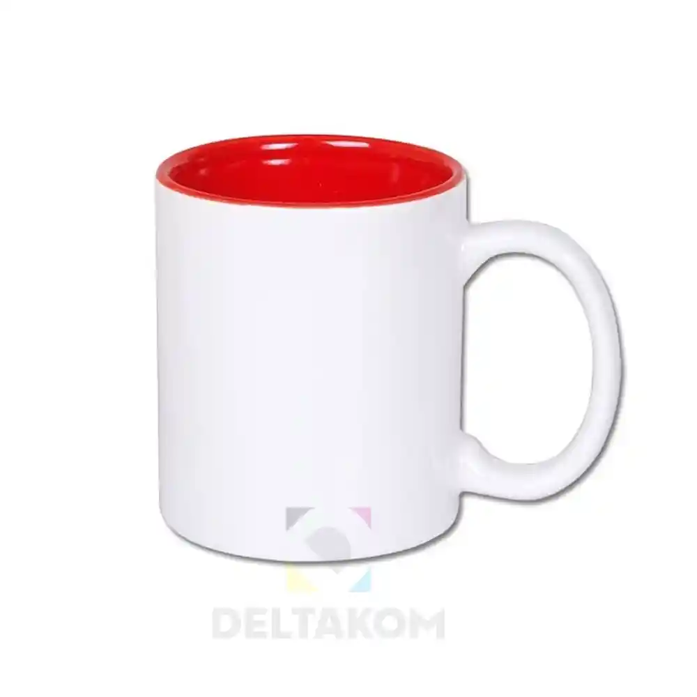 Keramična skodelica za sublimacijo 330 ml s RDEČO notranjostjo. Primerna za personaliziran tisk, darila ali promocijske izdelke.