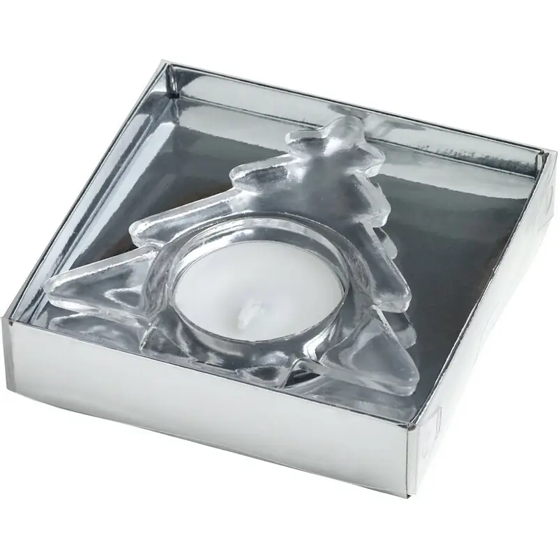 Svečnik “Božično drevo”, vključno s čajno svečko, v darilni škatli Material: steklo. Velikost: 1,5 cm: 9 x 9 x 2,2 cm.