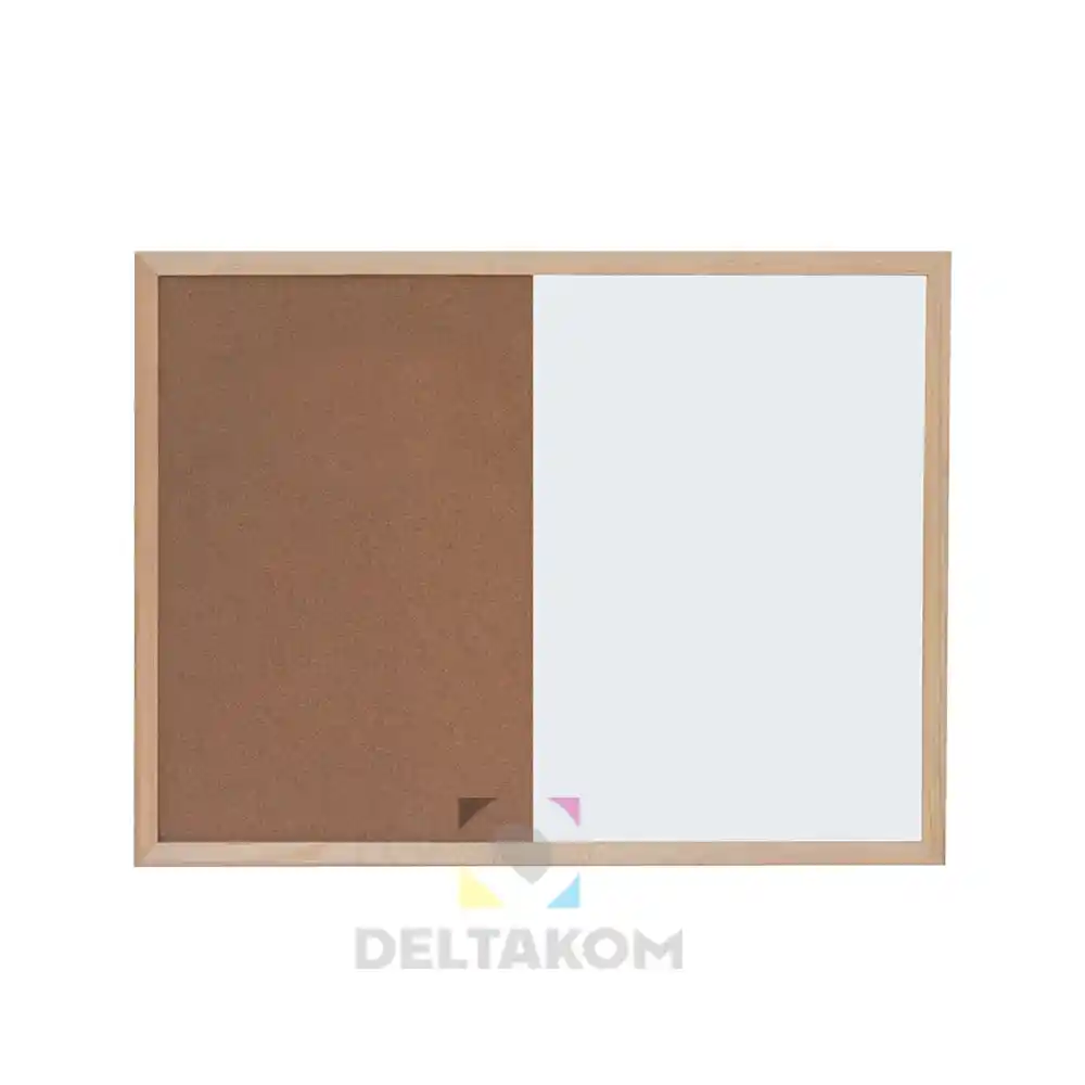 Tabla je razdeljena na dva dela – ena polovica je bela magnetna površina za pisanje z markerjem in uporabo magnetov, druga polovica pa je iz kakovostne plute za pripenjanje obvestil, fotografij ali dokumentov z risalnimi žebljički. Okvir iz naravnega borovega lesa zagotavlja stabilnost in estetski videz.