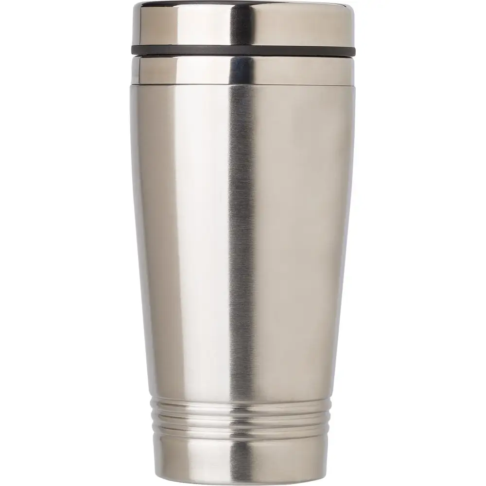 Termo vrč 450 ml, z dvojno steno, pokrov z zapiranjem, nedrseče dno, ohranja pijačo vročo do 4 ure Material: nerjaveče jeklo. Dimenzije: dimenzije: 8 x 17,5 cm.