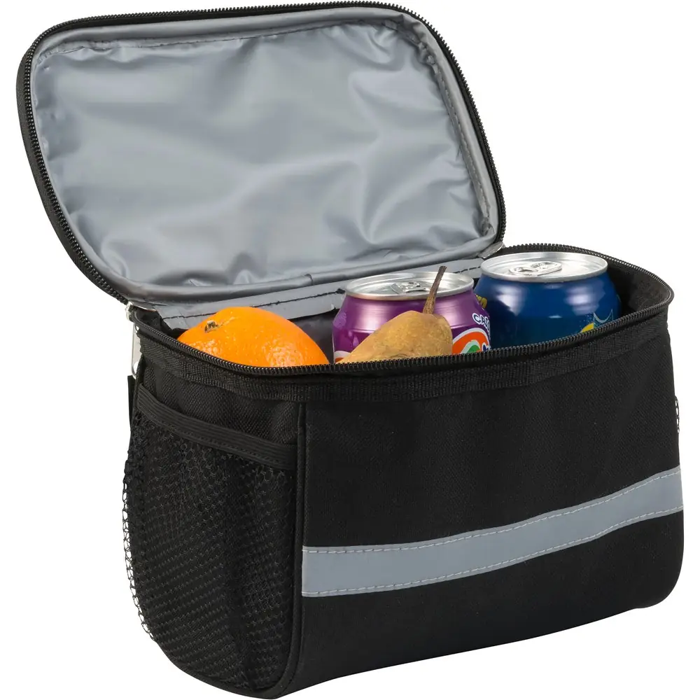 Hladilna torba za kolo z zadrgo, PVC žep na vrhu, odsevni trak, mrežasti žepi na obeh straneh Material: poliester 600D, PEVA. Dimenzije: 22 x 16 x 4 cm.