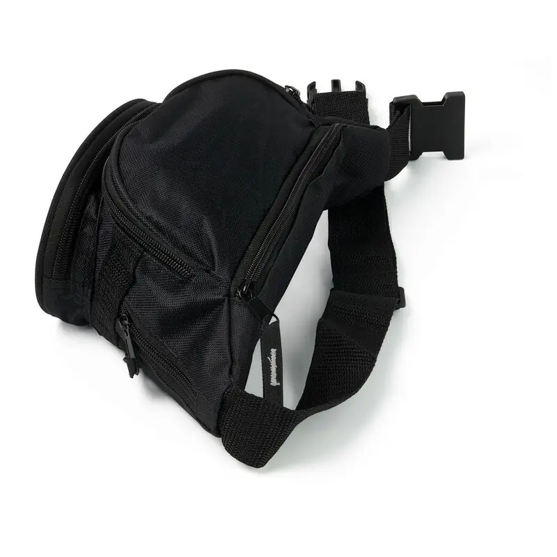 Torba za pas s 5 žepi na zadrgo in nastavljivim pasom Material: poliester (600D), kovina, najlon. Dimenzije: 31 x 11 x 18 cm.