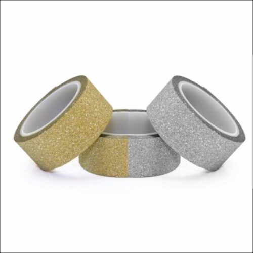 Samolepilni trak z bleščicami 15mm – dekorativni trak širine 15 mm z bleščečim efektom, primeren za zavijanje daril in ustvarjalne projekte.