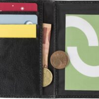 Usnjena denarnica RFID (blokira prenos podatkov) z različnimi žepi za bankovce ali kartice.
