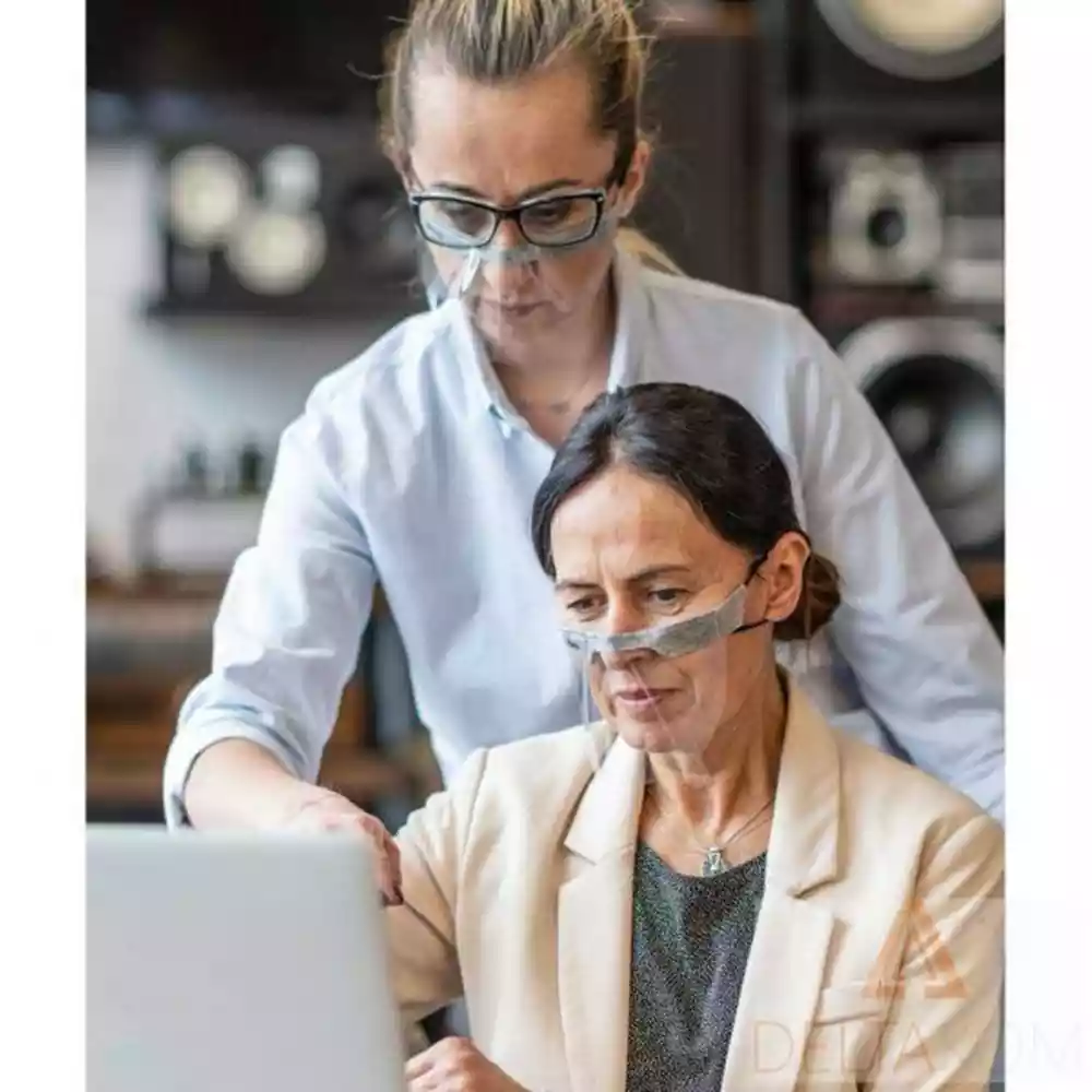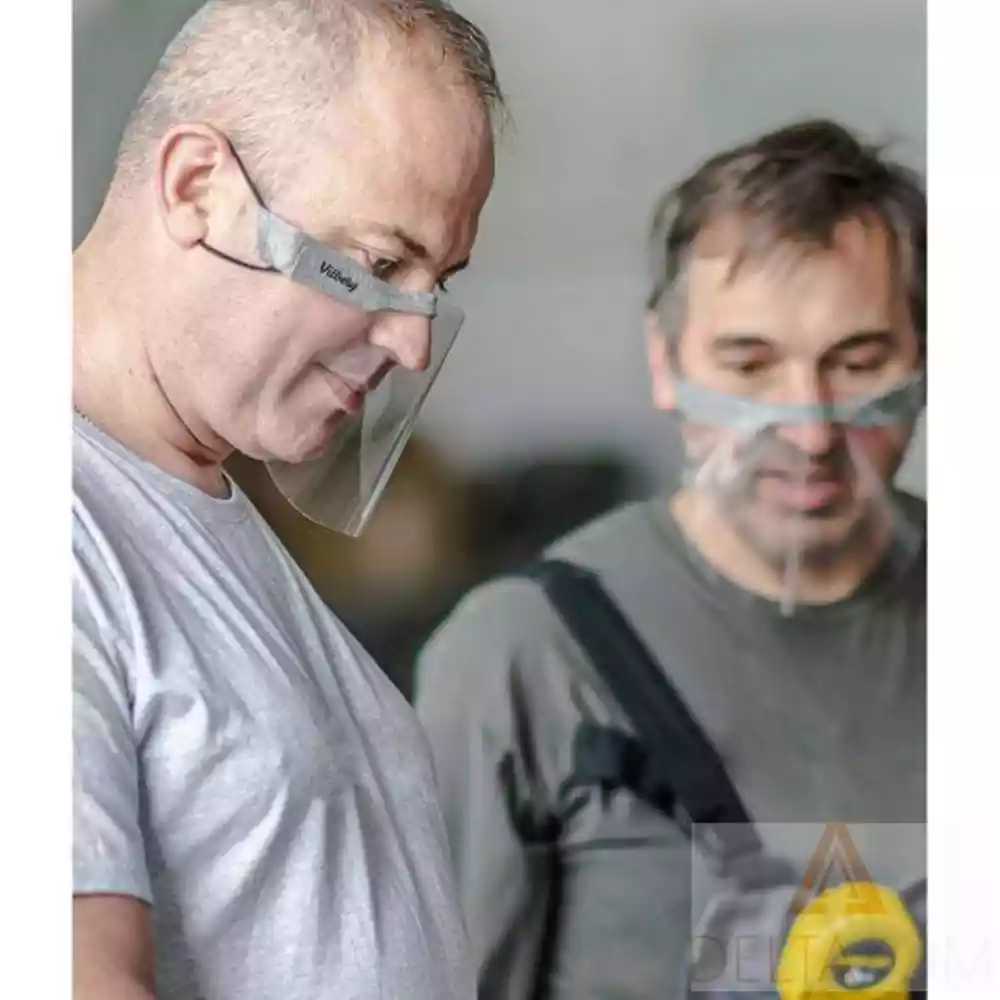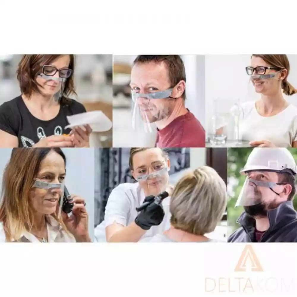 Popolnoma prozorna PET folija ne prekriva vidnosti ust, kar omogoča prosto komunikacijo z drugo osebo in učinkovito omejuje mešanje virusov.