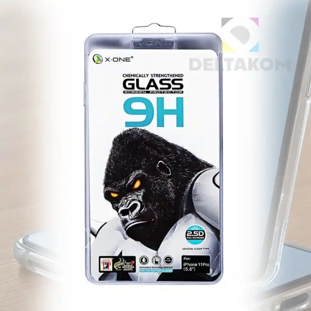 X-ONE Extra Strong zaščitno steklo za iPhone 11 Pro Max nudi vrhunsko odpornost 9H, jasnost in celovito zaščito zaslona pred poškodbami.